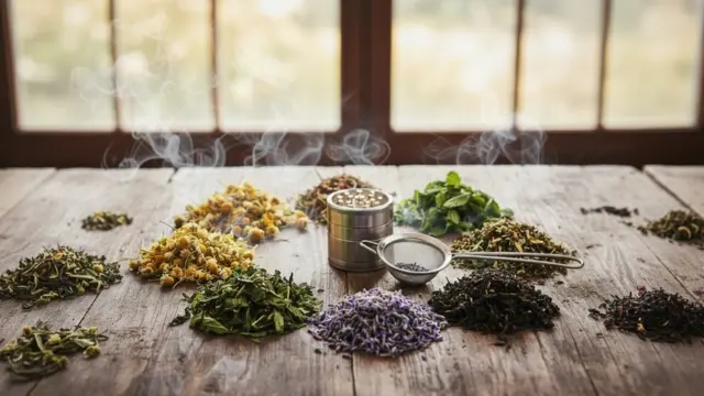 - Auswahl der Basis: Wähle deine gewünschten losen Teesorten oder Kräuter – denk an unsere Tipps zu Basis- und Aromakräutern.